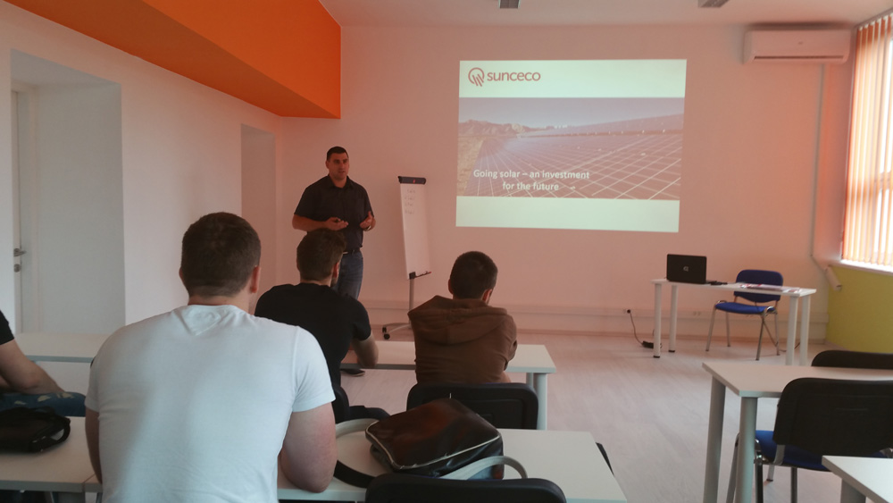 Sunceco Croatia team started with educational events for students having interest in advanced solar technologies. On 25 May Sunceco hosted a lecture for fourth-year students of University of Mechanical Engineering and Naval Architecture. It was also the opportunity to present Sunceco and its development plans. The presentation of the project was followed by Q&A and discussion on future involvement of young experts in local development initiatives.